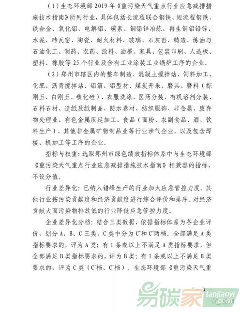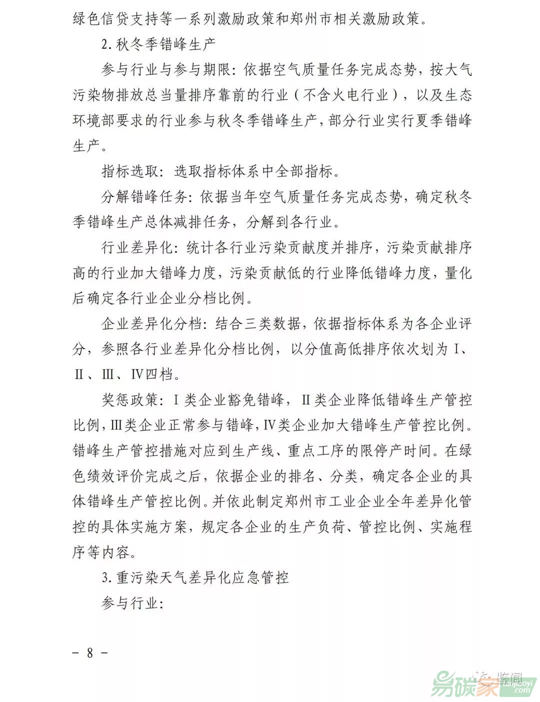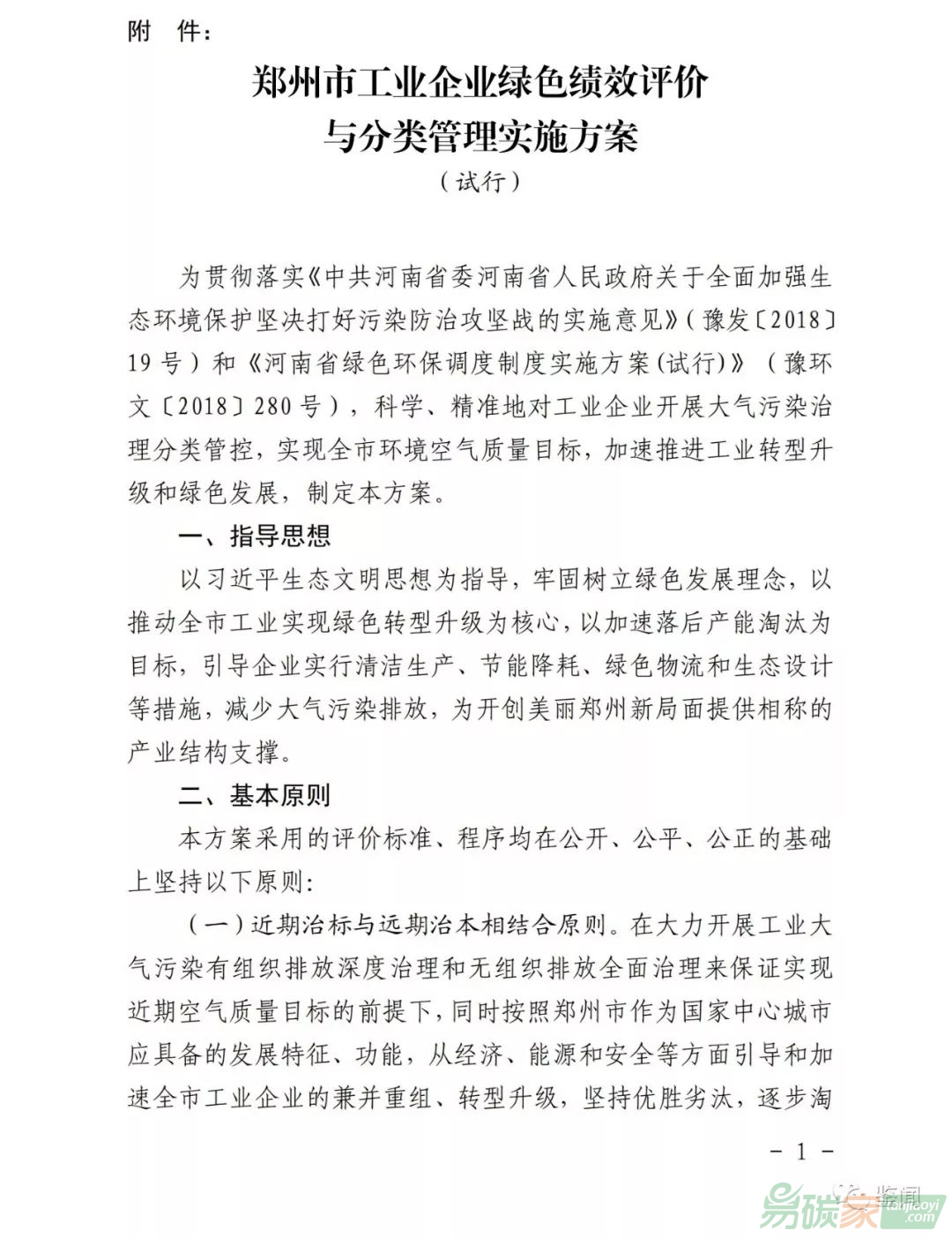 為科學(xué)、精準(zhǔn)地對工業(yè)企業(yè)開展大氣污染治理分類管控,實(shí)現(xiàn)全市環(huán)境空氣質(zhì)量目標(biāo),加速推進(jìn)工業(yè)轉(zhuǎn)型升級和綠色發(fā)展,7月31日,鄭州市環(huán)境污染防治攻堅(jiān)戰(zhàn)領(lǐng)導(dǎo)小組印發(fā)《鄭州市工業(yè)企業(yè)綠色績效評價(jià)與分類管理實(shí)施方案(試行)》。