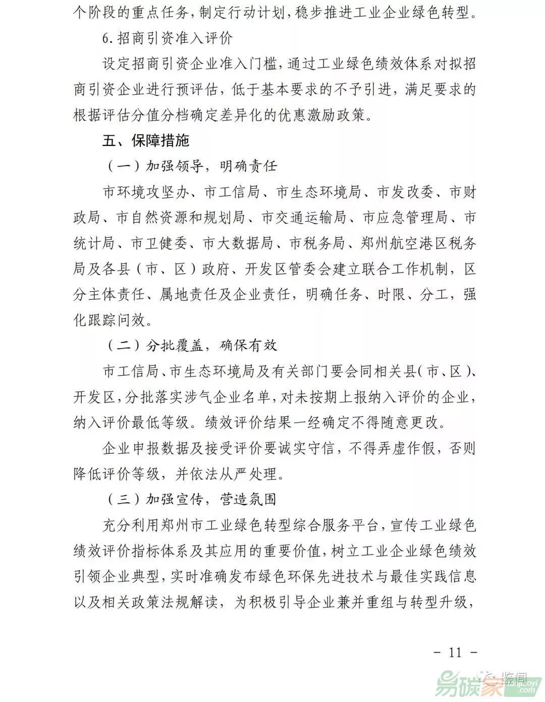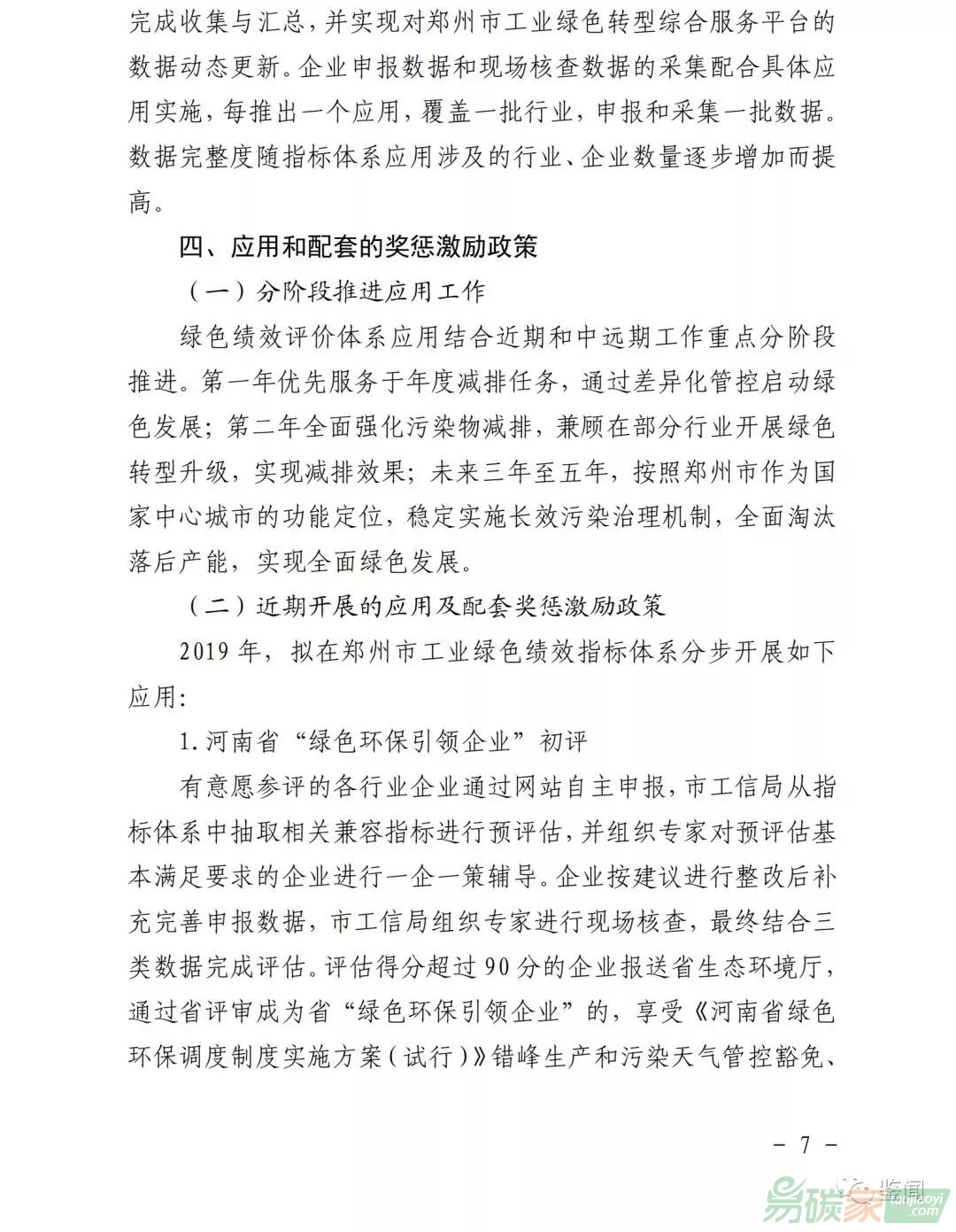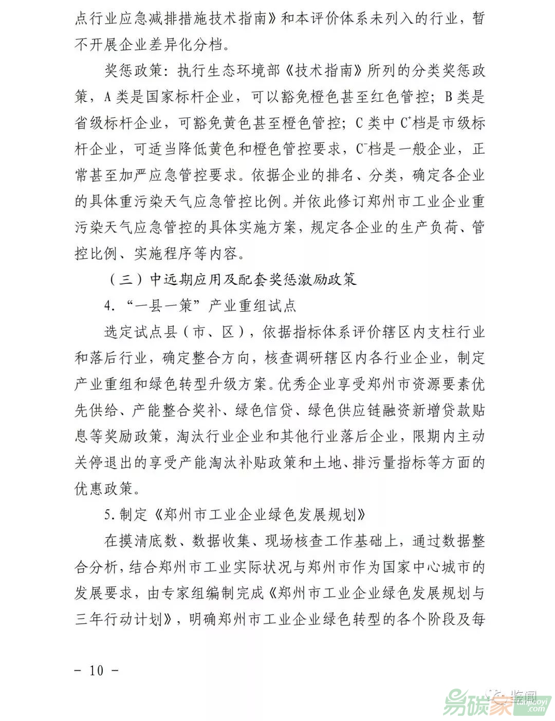 河南省綠色 環(huán)保調(diào)度制度實(shí)施方案(試行)》錯(cuò)峰生產(chǎn)和污染天氣管控豁免、綠色信貸支持等。未來,還將設(shè)立“一縣一策”產(chǎn)業(yè)重組試點(diǎn),同時(shí)設(shè)定招商引資企業(yè)準(zhǔn)入門檻,通過工業(yè)綠色績效體系對擬招商引資企業(yè)進(jìn)行預(yù)評估,低于基本要求的不予引進(jìn),滿足要求的根據(jù)評估分值分檔確定差異化的優(yōu)惠激勵政策。
