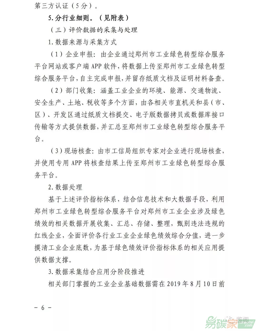 問題導(dǎo)向相結(jié)合,差別獎懲與動態(tài)調(diào)整相結(jié)合原則。參加鄭州市工業(yè)企業(yè)綠色績效評價(jià)的企業(yè),應(yīng)滿足具有合法手續(xù);在申報(bào)前未出現(xiàn)安全、環(huán)境事故或已按有關(guān)部門要求完成整改;按照要求安裝污染源在線監(jiān)測設(shè)備,未涉及在線監(jiān)測儀表數(shù)據(jù)造假;污染物排放穩(wěn)定達(dá)標(biāo);未使用《產(chǎn)業(yè)結(jié)構(gòu)調(diào)整指導(dǎo)目錄(2011年本)》(2013年修訂)中淘汰類設(shè)備等基本要求。不滿足上述任意一條要求的企業(yè)列為紅線企業(yè),不參與綠色績效評價(jià);紅線企業(yè)辦理完善基本手續(xù)、完成整改并通過驗(yàn)收,經(jīng)市工信局核實(shí)滿足評價(jià)條件的,可參與評價(jià)打分。鄭州工業(yè)企業(yè)綠色績效評價(jià)指標(biāo)包括環(huán)境、經(jīng)濟(jì)、能源、安全四個(gè)類別,每個(gè)類別包含績效、行動、長效機(jī)制三個(gè)維度,共12個(gè)一級指標(biāo),每個(gè)一級指標(biāo)下設(shè)不同分值的二級指標(biāo),分行業(yè)制定綠色績效評估體系指標(biāo)及評分標(biāo)準(zhǔn)。其中環(huán)境指標(biāo)105分,經(jīng)濟(jì)指標(biāo)35分,能源指標(biāo)45分,安全指標(biāo)15分,共200分。評價(jià)數(shù)據(jù)的采集分別來自企業(yè)申報(bào)、部門收集、現(xiàn)場核查等。據(jù)了解,相關(guān)部門掌握的工業(yè)企業(yè)基礎(chǔ)數(shù)據(jù)需在2019年8月10日前完成收集與匯總,并實(shí)現(xiàn)對鄭州市工業(yè)綠色轉(zhuǎn)型綜合服務(wù)平臺的數(shù)據(jù)動態(tài)更新。