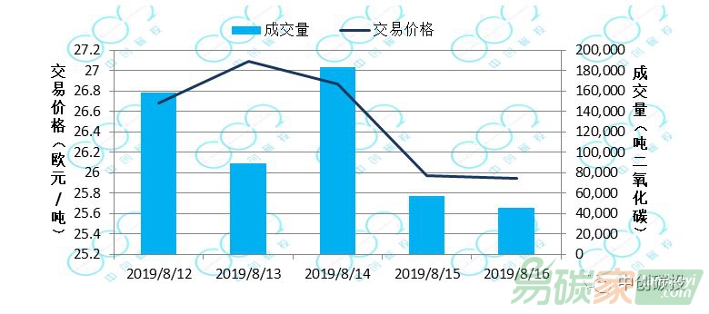 碳市場日交易均價在27.09-25.97歐元/噸之間波動。