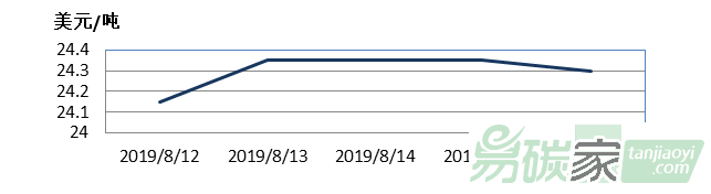 2019年08月12日至2019年08月16日,新西蘭碳市場價格在24.15-24.35美元/噸之間波動。
