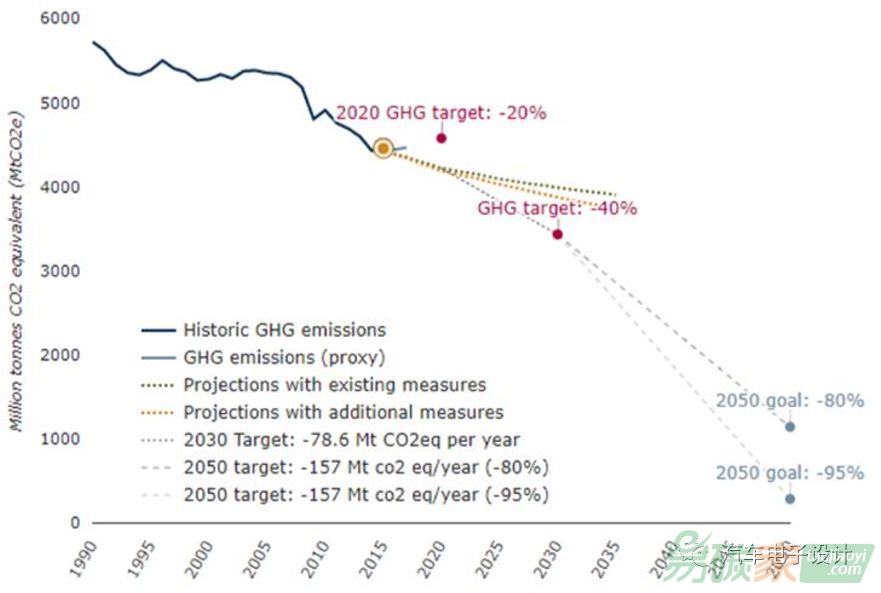節(jié)能意識(shí)最強(qiáng)的地區(qū),事實(shí)上也是這么標(biāo)榜的,所以在各個(gè)行業(yè)一直積極地推動(dòng)碳排放水平的降低。整個(gè)路徑就是一直推進(jìn),永不回頭:2007年通過的《2020氣候和能源一攬子計(jì)劃》提出到2020年, 將溫室氣體在1990年水平上降低20%2011年公布的《 2050競(jìng)爭(zhēng)性低碳?xì)W洲路線圖》 設(shè)定2050年降低80-95%2018年則提出了力圖2050年實(shí)現(xiàn)凈碳排放量為零的愿景