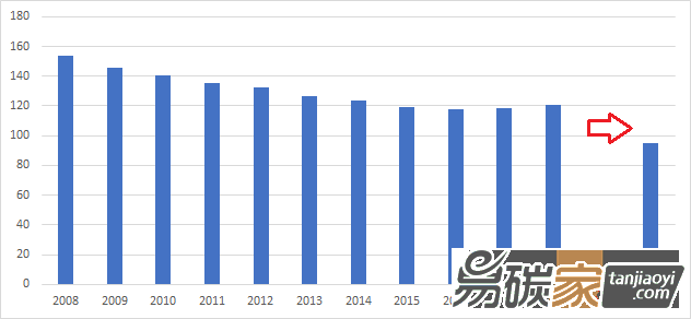 2014年歐盟要求2020年歐盟范圍內(nèi)95%乘用車平均碳排放需降低至95g/km CO2(折合成國標(biāo)油耗為3.8L/100km,年均下降幅度需達(dá)到5.4%),到2021年100%新車要達(dá)到此要求,超額部分按每輛汽車每g/km CO2 95歐元進(jìn)行罰款。