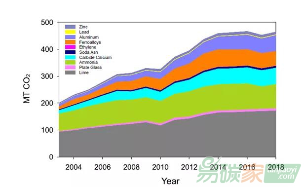 本文收集了各種工業(yè)過程的碳排放數(shù)據(jù),并根據(jù)現(xiàn)有數(shù)據(jù)核算了2003年至2018年的石灰,平板