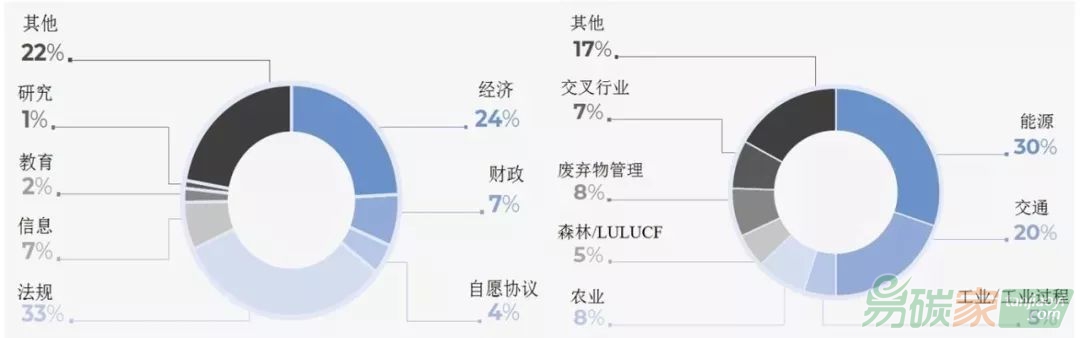 圖5 發(fā)達(dá)國家的氣候變化政策工具及其行業(yè)分布情況