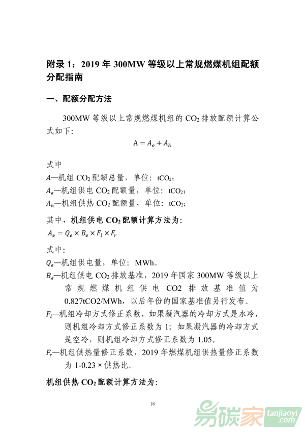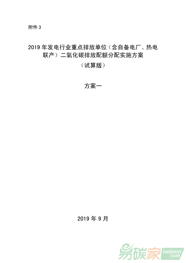 2019年發(fā)電行業(yè)重點(diǎn)排放單位(含自備電廠、熱電聯(lián)產(chǎn))二氧化碳排放配額分配實(shí)施方案(試算版)