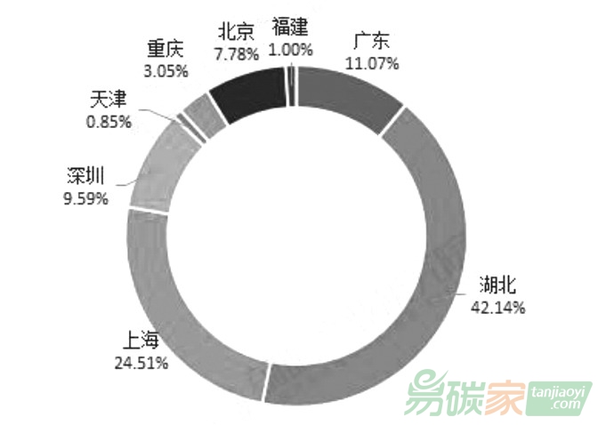 圖為2013—2018年我國碳排放交易量區(qū)域分布情況