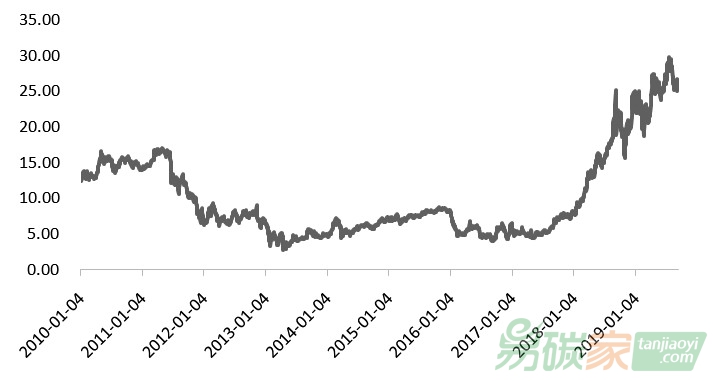 雖然碳市場規(guī)模不斷擴大,但達成的效果還不理想,因為碳價格仍處于較低水平。根據(jù)世界銀行報告顯示,2018年碳市場所覆蓋的全球碳排放量中,達到《巴黎協(xié)定》目標的占比不足5%,即每噸二氧化碳價格在40至80美元之間。由于2018年碳價格上漲,這一比例已經(jīng)較2017年的1%有了明顯增長,但這一比例仍然太低,無法實現(xiàn)《巴黎協(xié)定的目標》。此外,碳市場所覆蓋的碳排放量中,仍有約一半的價格在每噸二氧化碳10美元以下。