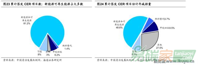 甘肅占比較高,其中內(nèi)蒙古近年來風電項目發(fā)展較快,云南、四川、甘肅水電項目充足,在CER項目申請中具天然優(yōu)勢,預(yù)計未來這種趨勢仍將保持。