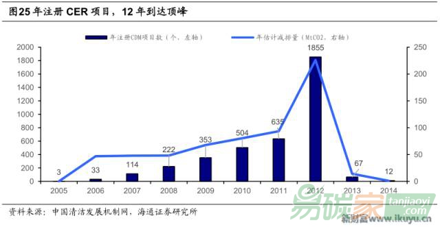 2013年,國內(nèi)碳市場試點開始運行,CER項目開始逐漸轉(zhuǎn)向申請CCER(中國自愿減排量)。