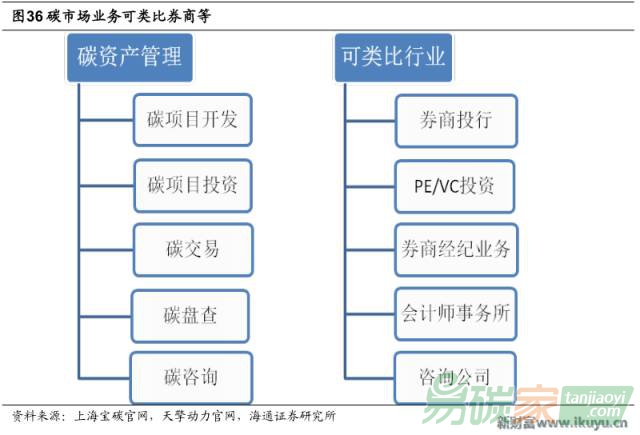 碳盤查、碳咨詢等。可類比行業(yè)為券商投行、PE/VC投資、券商經(jīng)紀業(yè)務(wù)、會計師事務(wù)所和咨詢公司。