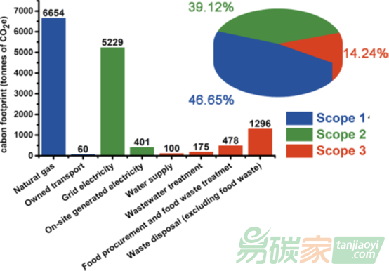 碳排放的不同環(huán)境部門定量分析耦合路徑對于促進(jìn)區(qū)域尺度下的綜合性可持續(xù)管理至關(guān)重要。大學(xué)自身可被視為小型區(qū)域,它提供了區(qū)域尺度的數(shù)據(jù),并通過教育、學(xué)術(shù)研究以及財(cái)產(chǎn)運(yùn)作為全球可持續(xù)發(fā)展做出貢獻(xiàn)。本研究基于不同環(huán)境足跡組合構(gòu)建了一個(gè)耦合概念分析框架,并通過校園運(yùn)營和食品采購對小型區(qū)域的水循環(huán)、能源和氣候間的相互作用進(jìn)行評價(jià)。以英國基爾大學(xué)(Keele University)為例,2015~2016學(xué)年的總能源足跡、總