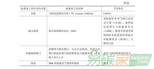 所有工具均是在 IPCC、企業(yè)溫室氣體核算體系等文件的指導(dǎo)基礎(chǔ)上形成的。不同工具、標(biāo)準(zhǔn)和規(guī)范的溫室氣體清單基礎(chǔ)是相同的。其區(qū)別主要在于闡述特定實體的使用方法。例如,清單主要考慮的是實體邊界的確定。由于個人相對于企業(yè)、其他團(tuán)體的邊界是不同的,不同類型的實體存在不同的標(biāo)準(zhǔn)。此外,與實體有關(guān)的重要的活動不同,標(biāo)準(zhǔn)和工具也不同。