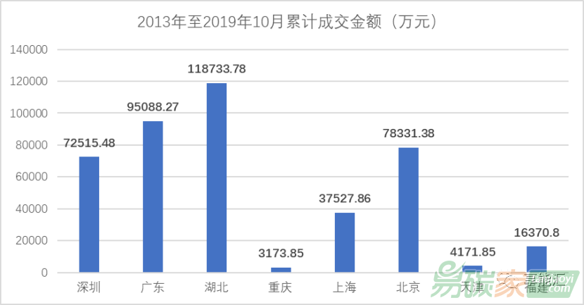 圖3:碳交易2013年至2019年10月交易價(jià)格變化情況