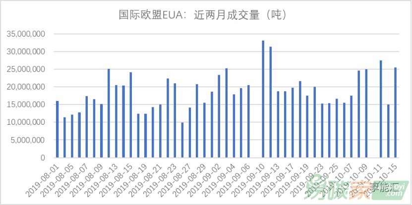 圖4:歐洲碳交易所EUA2018年-2019年10月成交量