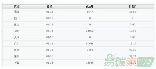 根據(jù)7個省份的碳排放交易試點數(shù)據(jù)來看,目前碳價格整體水平在20-50元/噸。對于企業(yè)來說,影響還比較小。對于純投資者而言有較大的風(fēng)險,但機(jī)會也很大。截至到1月16日,從成交量來看,廣東、湖北及上海占比較大。