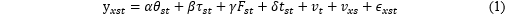 碳市場建立之后的虛擬變量或碳市場所帶來的排放成本;τst 為歐盟對S 部門實施的平均關稅率;Vt 為年份固定效應;Vxs 為進口國固定效應;Fst 包括S 部門的熟練工人、非熟練工人和資本的邊際報酬;εxst 為隨機誤差項。