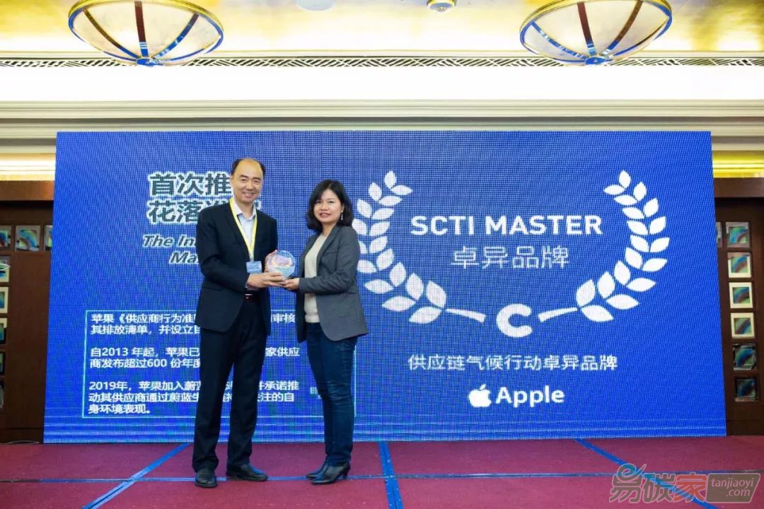 公眾環(huán)境研究中心主任馬軍為SCTI卓異品牌蘋果頒發(fā)證書