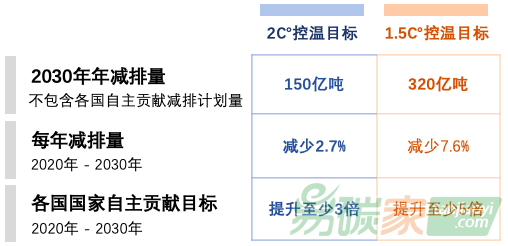 那么,未來十年里,全球減排力度要做到何種程度才能在2030年實(shí)現(xiàn)2℃或1.5℃的控溫目標(biāo)呢?這些嚴(yán)峻的數(shù)字告訴了我們答案: