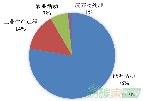 農(nóng)業(yè)活動是溫室氣體重要排放源之一。2019年6月,我國按照《聯(lián)合國氣候變化框架公約》(以下簡稱《公約》)相關要求向《公約》秘書處提交了《中華人民共和國氣候變化第三次國家信息通報》。其中,根據(jù)2014年國家溫室氣體清單的結果(見圖1),農(nóng)業(yè)溫室氣體排放量為8.3億噸CO2eq,占全國溫室氣體排放總量的7%,尤以CH4和N2O兩大農(nóng)業(yè)源溫室氣體排放占各自總量的比重均居全球最高。中國農(nóng)業(yè)活動基數(shù)大、增長快,如果不采取相應的