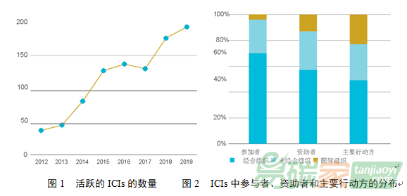 2013年以來,活躍的氣候行動國際合作項(xiàng)目(ICIs)數(shù)量一直在增加。在214個活躍的氣候行動ICIs中,193個項(xiàng)目在2019年仍然保持活躍(圖1)。許多項(xiàng)目的啟動及規(guī)模的擴(kuò)大主要在全球氣候峰會前后。