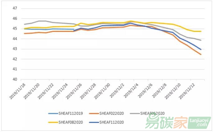 12月9日至12月13日,上海碳配額遠(yuǎn)期中央對(duì)手清算業(yè)務(wù)保持平穩(wěn)運(yùn)行。價(jià)格方面,流通協(xié)議價(jià)格隨現(xiàn)貨價(jià)格小幅波動(dòng),其中2020年2月協(xié)議期末結(jié)算價(jià)42.47元/噸,較上周五環(huán)比下跌2.76元/噸,2020年5月協(xié)議期末結(jié)算價(jià)43.88元/噸,較上周五環(huán)比下跌1.55元/噸。