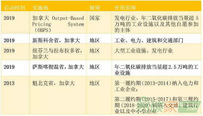 (三) 加拿大各省啟動(dòng)碳定價(jià)機(jī)制