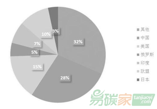 數據顯示,2000年以來,我國CO2排放量快速增加;2005年超過美國,成為世界第一大溫室氣體排放國;2018年達到峰值,年排放量為94.3億噸,總量遠高于排在第二位的美國,占世界總排放量的28%。截至2018年年底,全世界CO2排放量約為339億噸,其中碳排放大國美國、歐盟、印度、俄羅斯和日本排放量分別為51億、35億、25億、15.5億和11.5億噸,占全世界總排放量的近70%。