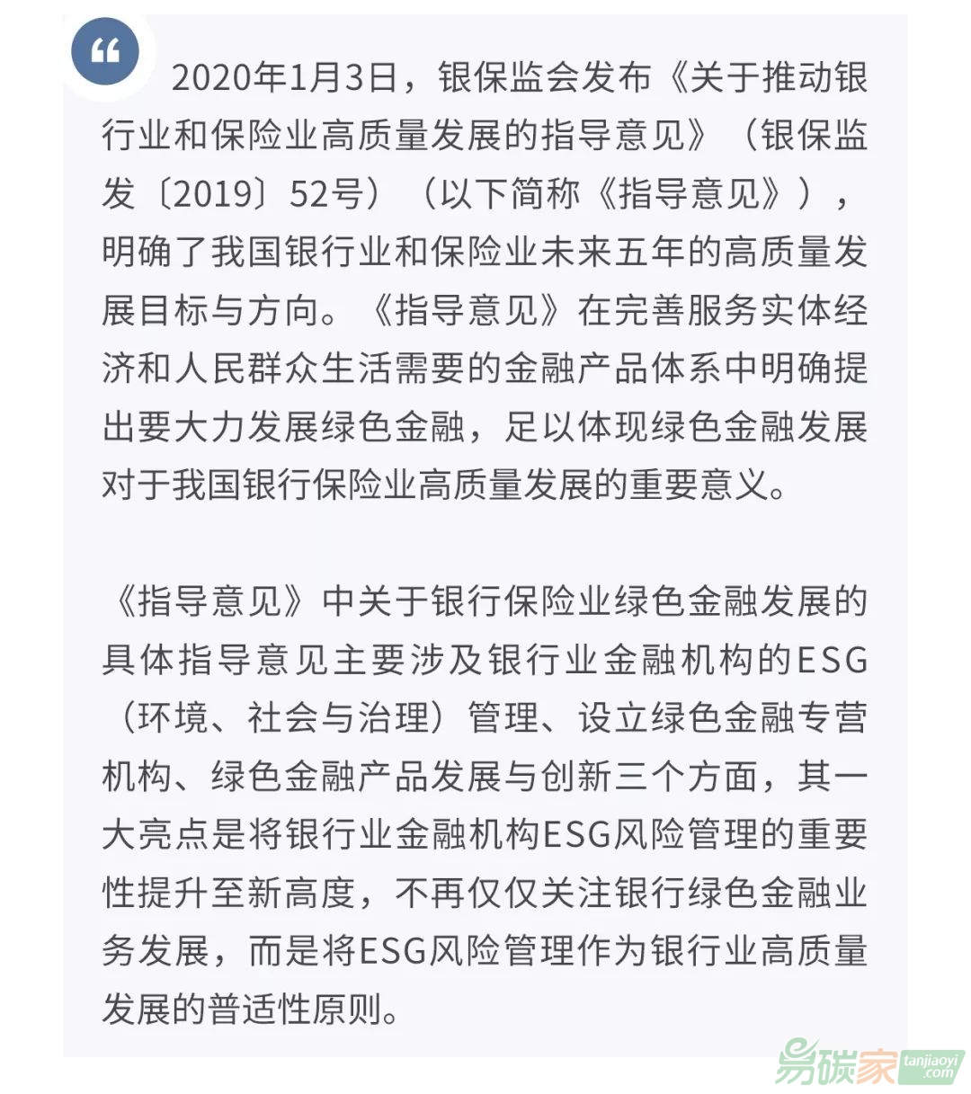 一是銀行業(yè)金融機構要建立健全環(huán)境與社會風險管理體系,將環(huán)境、社會、治理要求納入授信全流程。目前隨著我國社會的進步,人們對環(huán)境保護、社會責任等