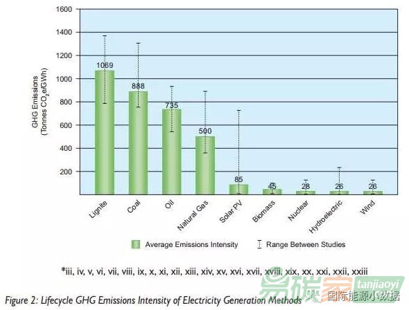 ——核電的排放強(qiáng)度中值為29克/千瓦時(最低2克/千瓦時,最高130克/千瓦時);