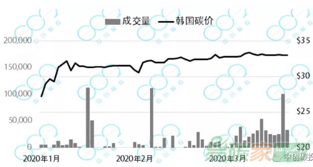 韓國碳價(jià)在2020年一季度穩(wěn)步上升,自27.2美元上漲至33.0美元每噸,漲幅21.3%。一季度末韓國碳價(jià)穩(wěn)定在33.0美元左右。
