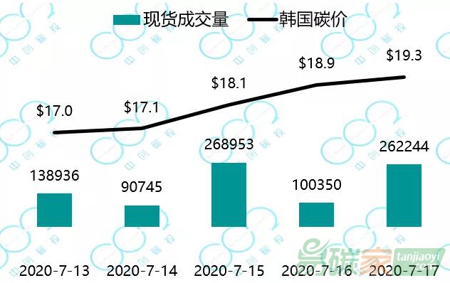 2020年7月13日至7月17日,韓國碳價小幅回升至19.3美元每噸。今年韓國碳市場履約延期一個月到7月底;此前環(huán)境部曾在5月份表示由于