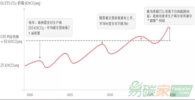 做為新型的金融衍生工具,碳差價(jià)合約(CCfD)提供了一種降低資本密集型項(xiàng)目投資風(fēng)險(xiǎn)的方法,并有效保障了低碳技術(shù)的投資回報(bào)。對(duì)政府而言,CCfD還提供了另一個(gè)吸引投資方的特點(diǎn),即投資成本可能會(huì)隨著時(shí)間的推移和碳價(jià)格的上漲而逐步收回。
