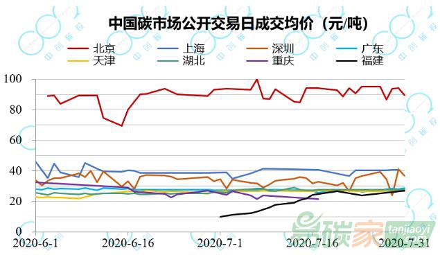 截至2020年7月31日,全國(guó)CCER累計(jì)成交2.4億噸。其中上海CCER累計(jì)成交量持續(xù)領(lǐng)跑,且在7月破億,達(dá)1.01億噸,占比42%;廣東CCER7月成交量最高,達(dá)220.7萬(wàn)噸,累計(jì)成交5084萬(wàn)噸,排名第二,占比21%;北京、深圳和