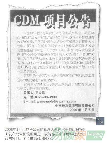 2006年1月,神馬公司的管理人員在《平頂山日?qǐng)?bào)》上發(fā)布公告稱該項(xiàng)目是一項(xiàng)能夠帶來環(huán)境和經(jīng)濟(jì)效益的項(xiàng)目: