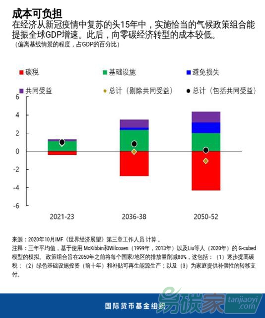 如果得以實施,這一政策計劃將通過減排和控制氣候變化,使全球經(jīng)濟走上可持續(xù)發(fā)展之路。從凈效應(yīng)看,該計劃將使氣候變化導(dǎo)致的產(chǎn)出損失大約減半,并確保2050年之后的長期實際GDP增速遠高于當(dāng)前走勢。