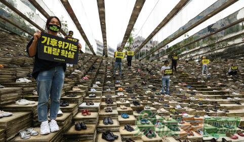 自今年年初以來(lái),韓國(guó)民眾組織了強(qiáng)有力的氣候運(yùn)動(dòng),在線(xiàn)上和線(xiàn)下舉行抗議活動(dòng),包括青少年罷課及寫(xiě)信給議員要求采取氣候行動(dòng)。氣候運(yùn)動(dòng)勢(shì)頭只增不減。9月,當(dāng)人們因新冠疫情無(wú)法走上街頭時(shí),來(lái)自全國(guó)各地的數(shù)千雙鞋在首爾市中心展出,以表達(dá)人們共同對(duì)抗氣候危機(jī)的愿望。