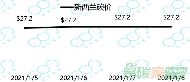 2021年1月5日至1月8日,新西蘭碳價(jià)穩(wěn)定在27.2美元每噸。