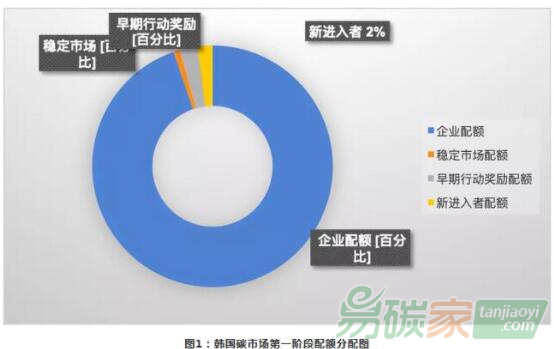 在第一階段,大多數(shù)企業(yè)依照2011-2013年數(shù)據(jù)根據(jù)歷史平均法收到政府發(fā)放的免費配額;而對于水泥、煉油、航空業(yè),政府按照基準(zhǔn)法免費發(fā)放配額。另外,政府預(yù)留了8900萬噸配額,其中1400萬噸用于穩(wěn)定市場價格,4100萬噸用于早期行動獎勵,3300萬噸作為新加入者儲備,各配額分配比例見圖1。