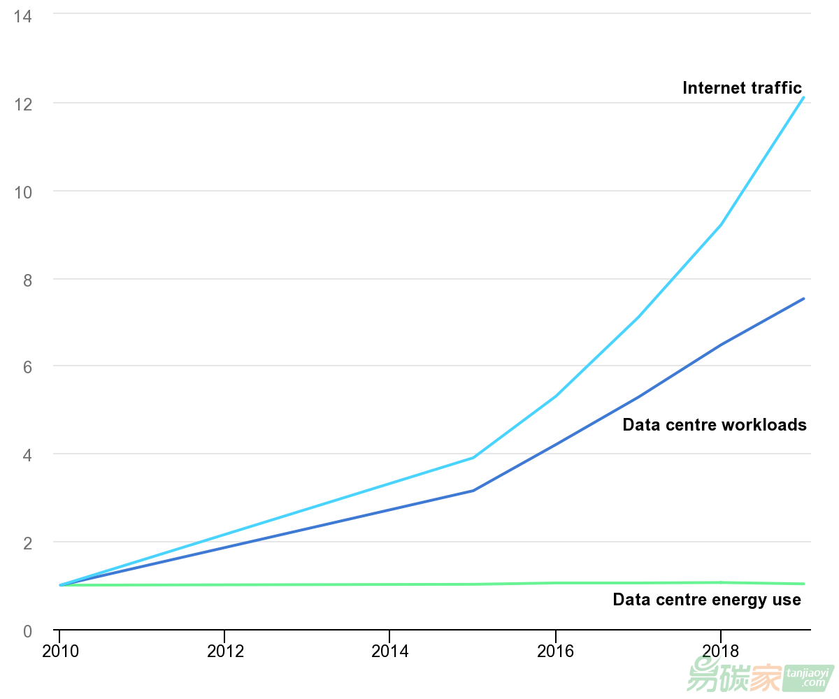 效率的提升使得數(shù)據(jù)中心能耗占比幾乎保持不變