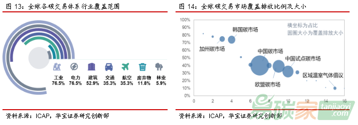 ? 納入行業(yè)由電力行業(yè)逐步拓展至所有高排放行業(yè)。根據(jù)生態(tài)環(huán)境部于2021年1月發(fā)布的《碳排放權(quán)交易管理辦法(試行)》,全國碳市場交易首批僅納入2225家發(fā)電行業(yè),在未來我國碳市場建設(shè)逐漸成熟的情況下,將最終覆蓋發(fā)電、石化、化工、建材、鋼鐵、有色金屬、造紙和國內(nèi)民用航空等八大行業(yè)。