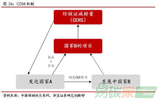 ? 清潔發(fā)展機(jī)制(CDM):發(fā)達(dá)國家通過提供資金和技術(shù)支持等方式,與發(fā)展中國家開展項(xiàng)目級的合作,發(fā)展中國家通過實(shí)施減排項(xiàng)目所實(shí)現(xiàn)的“經(jīng)核證的減排量”(簡稱“CER”),用于發(fā)達(dá)國家締約方抵消等量的碳排放量,從而完成在議定書第三條下的承諾。