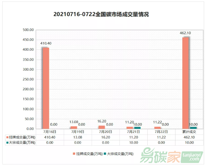 2021年7月16日—7月22日全國碳市場成交量走勢