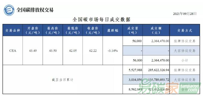 碳市場(chǎng)碳排放配額(CEA)累計(jì)成交量8,562,844噸,累計(jì)成交額421,412,020.66元。