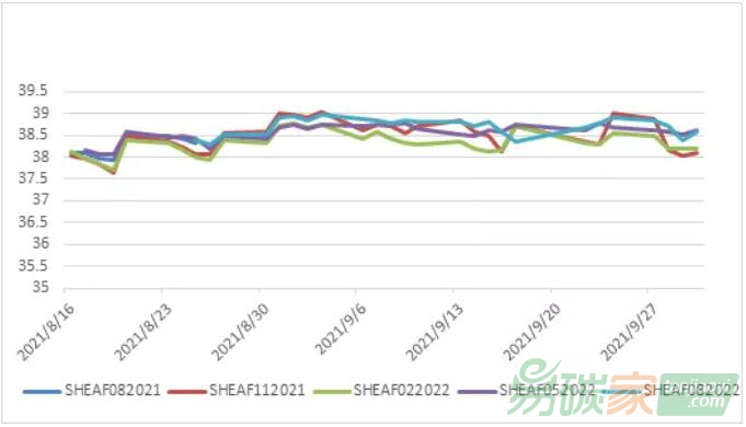 本報(bào)告期內(nèi)(2021年9月22日至2021年9月24日),上海碳配額遠(yuǎn)期(SHEAF)中央對手清算業(yè)務(wù)保持平穩(wěn)運(yùn)行。本周遠(yuǎn)期市場價(jià)格整體小幅下滑,其中2021年11月協(xié)議期末結(jié)算價(jià)為38.09元/噸,較上周五9月24日下跌0.91元/噸,2022年2月協(xié)議期末結(jié)算價(jià)38.20元/噸,較上周五9月24日下跌0.34元/噸。