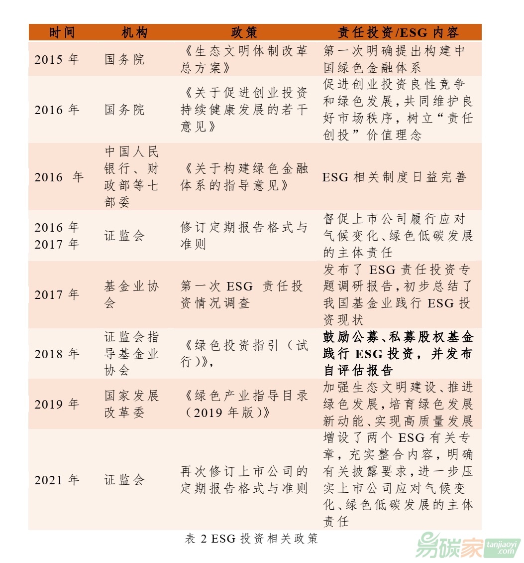 政策引導是ESG理念深入投資領域的重要推動力。2020年第七十五屆聯(lián)合國大會上,中國向世界鄭重承諾“力爭在2030年前實現(xiàn)碳達峰,努力爭取在2060年前實現(xiàn)