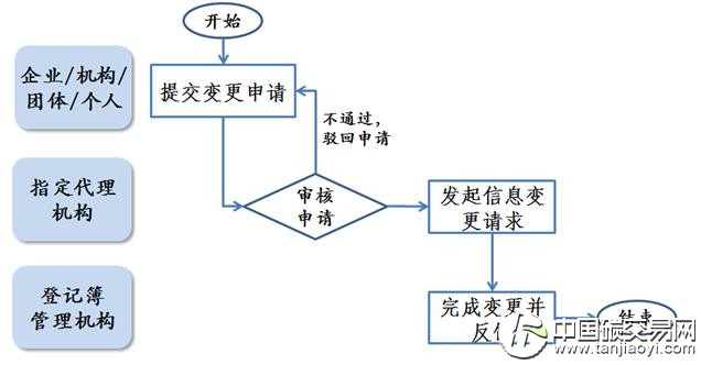 減排量、產(chǎn)生減排量時間等備案信息;一般信息是指企業(yè)/機構(gòu)/團體名稱、法人代表、注冊地址、聯(lián)系人、賬戶代表、個人姓名等信息。上述信息發(fā)生變化時,須在登記簿中及時變更。