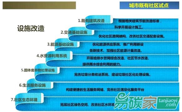 ? 2014年3月,國家發(fā)展和改革委員會發(fā)布關(guān)于開展低碳社區(qū)試點(diǎn)工作的通知(發(fā)改氣候[2014]489號),要求各地政府做好低碳園區(qū)和低碳社區(qū)的組織、創(chuàng)建和落實(shí)工作。