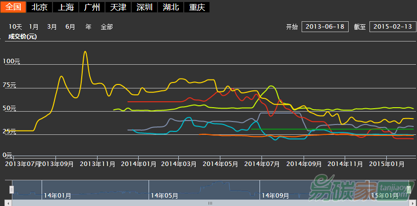 深圳的碳價一度高達130元人民幣,而湖北省的碳價才在20元人民幣左右,北京碳價大約為50元人民幣,這些市場的交易量通常也非常小。