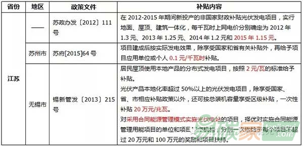 江蘇光伏補貼政策最大的亮點無錫市是對光伏制造、EPC企業(yè)的支持,采用合同能源管理模式實施光伏電站項目的,一次性給予項目獎勵。而蘇州市政府5月6日才公布分布式光伏補貼政策,蘇州市除享受國家和省有關(guān)補貼外,再給予項目應(yīng)用單位或個人0.1元/千瓦時補貼,暫定補貼期限為三年。